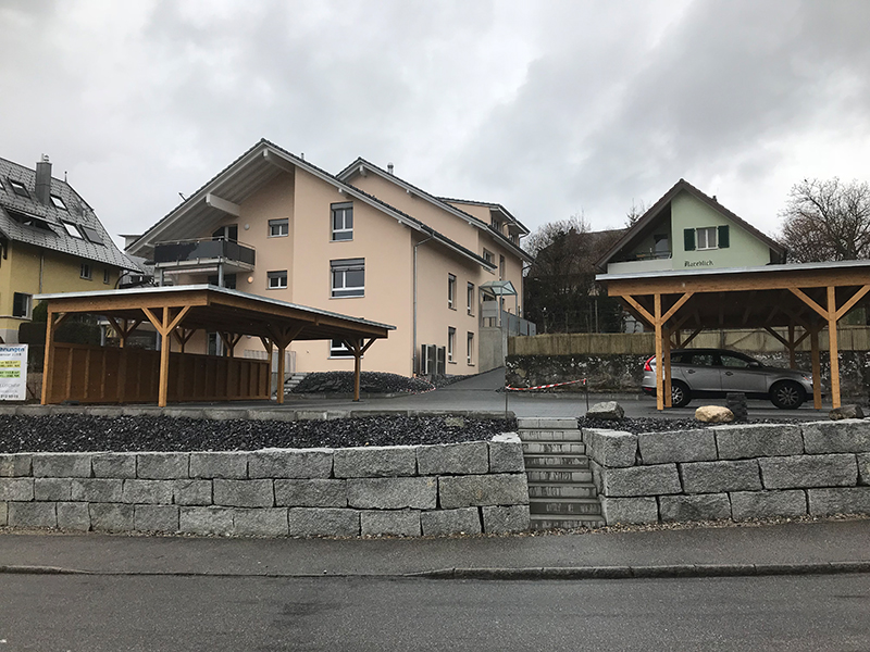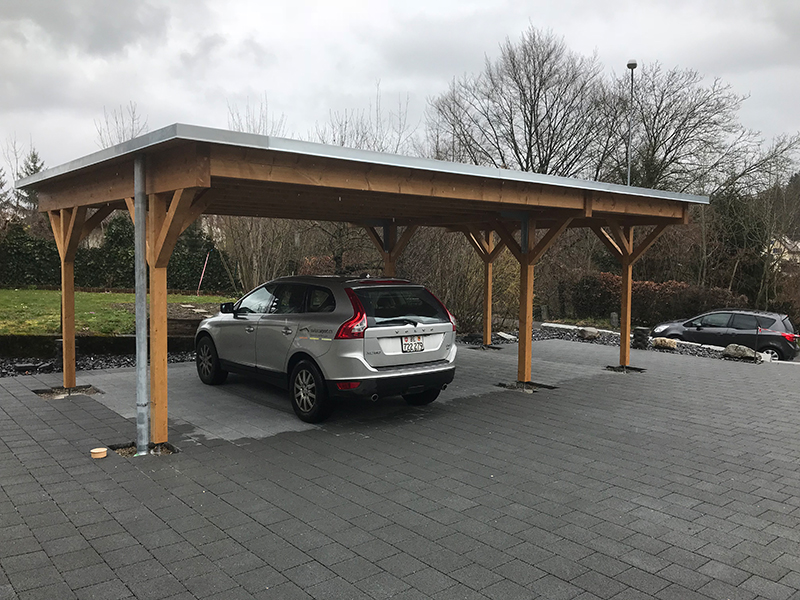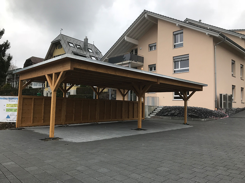 Carport mit Kiesklebedach und einer Rückwand mit 3-Schichtplatten. Nr.C25