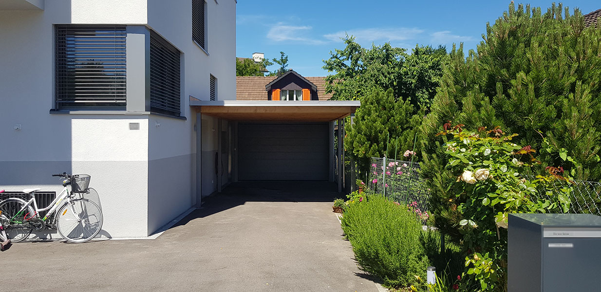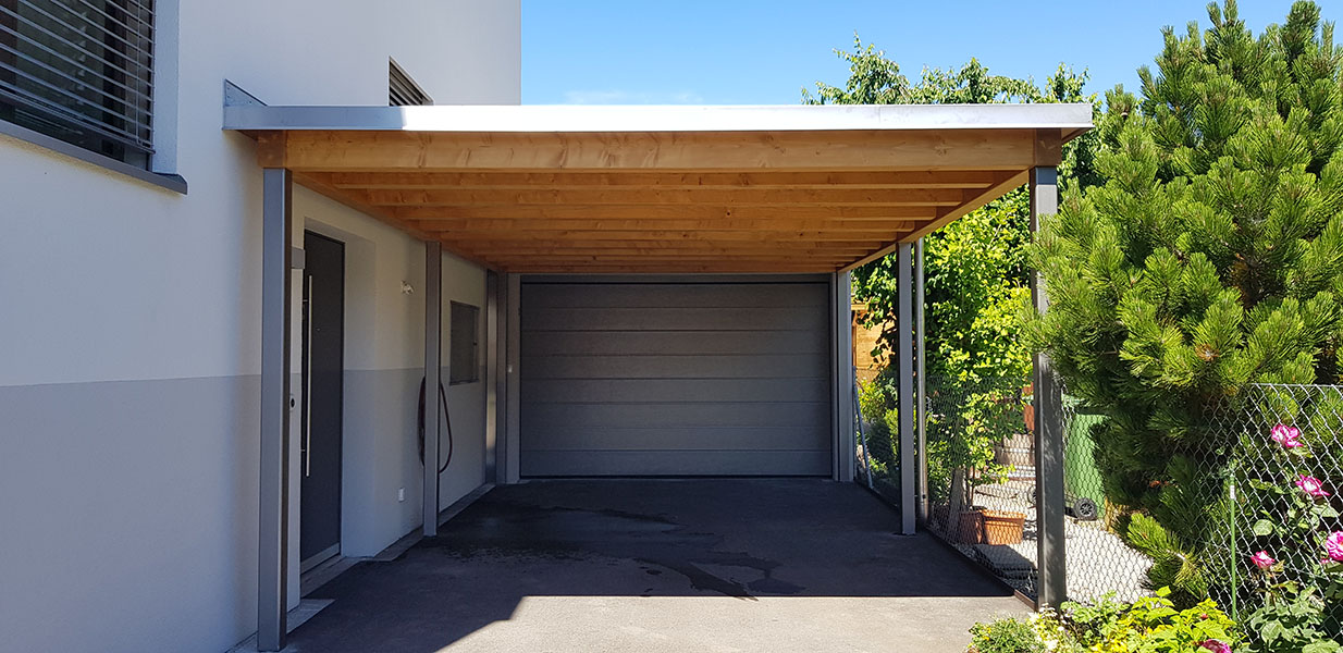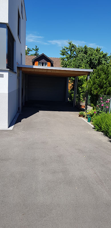 Carport mit Kiesklebedach. Stützen aus Stahl. Nr.C77