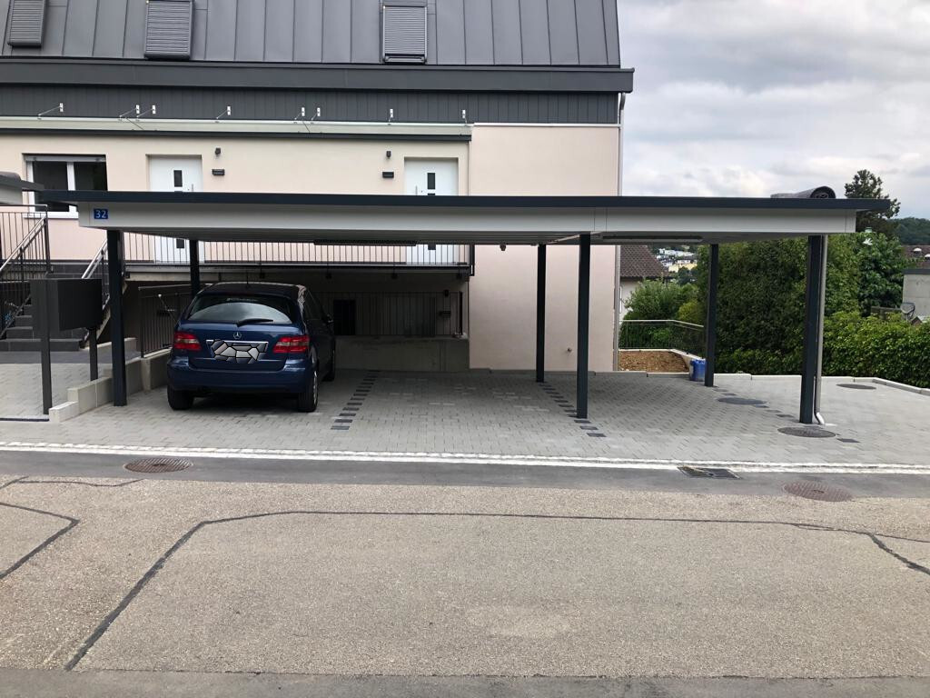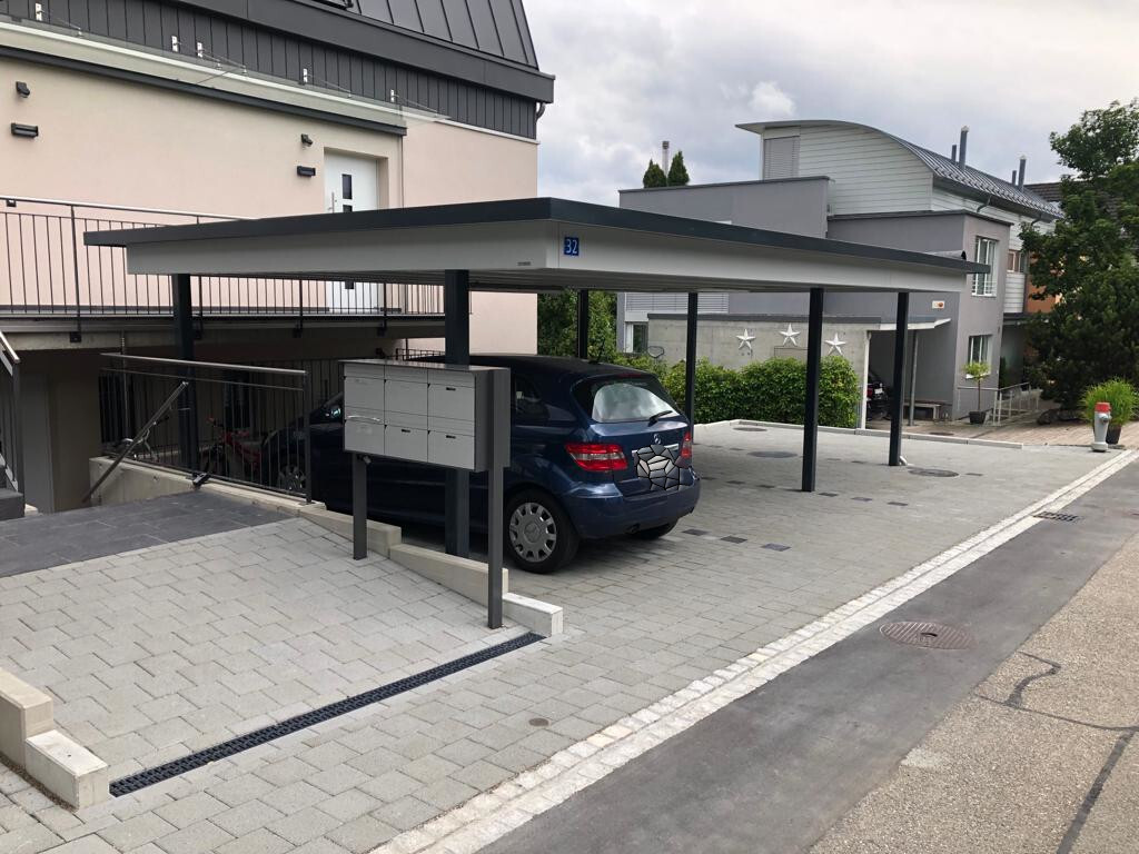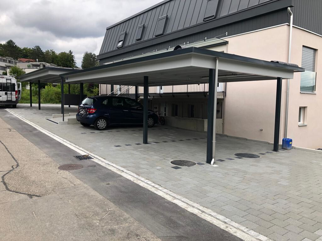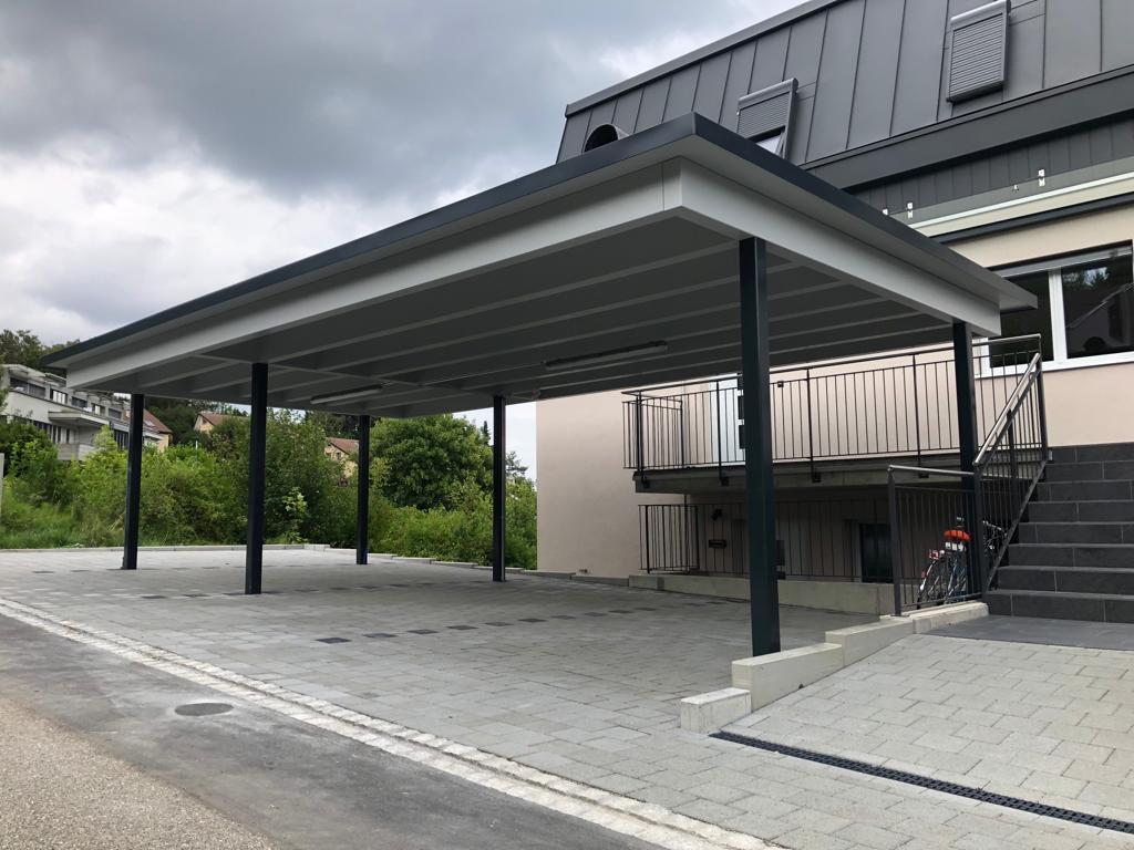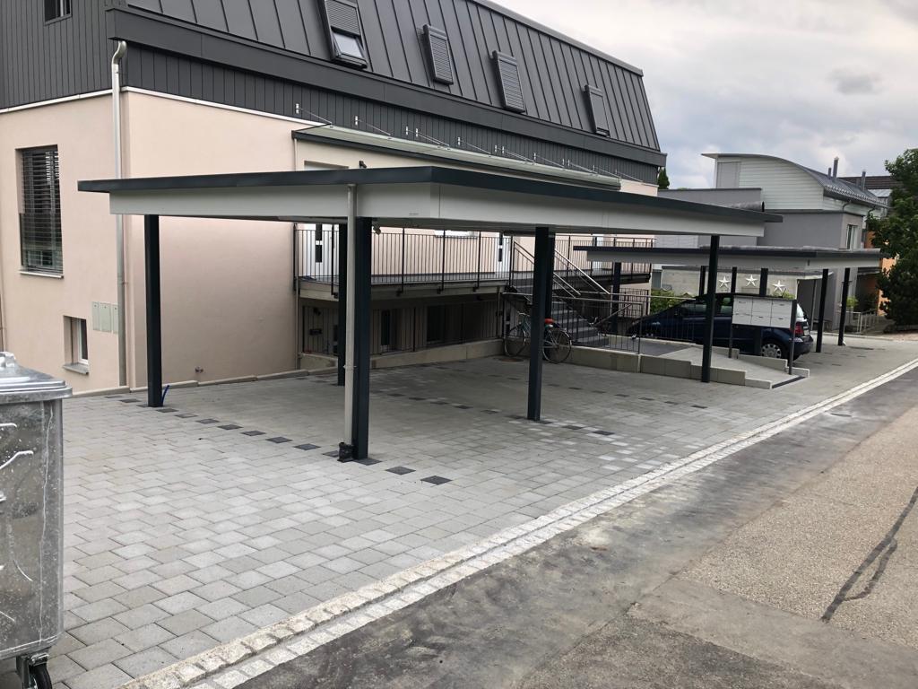 2 x 3 er Carport mit Eingespannten Stahlstützen. Eindeckung mit Extensiv-Dachbegrünung. Abschlussbleche in Wunschfarbe. Carport Nr.C133