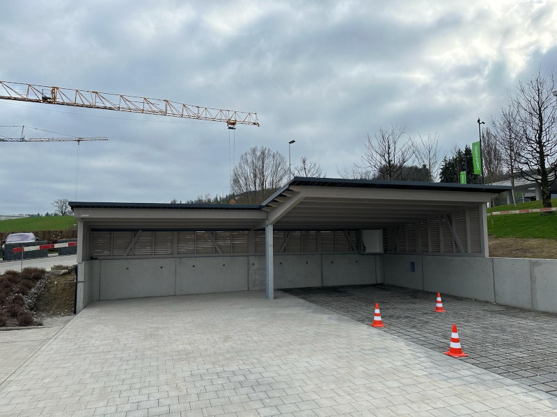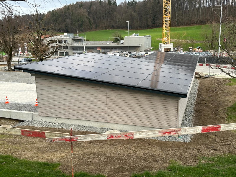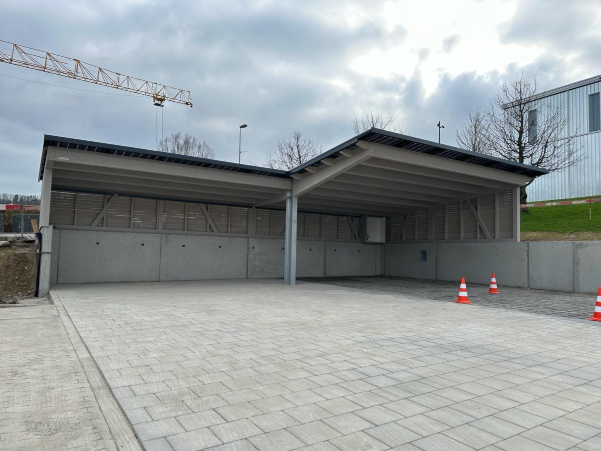 Fahrradunterstand bei Campus. Eindeckung mit PV-Indach Modulen, Transluzid. Nr.SO26
